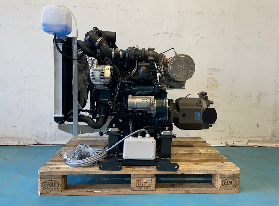 37kW Kubota Stage V powerpack with variable plunger pump on frame